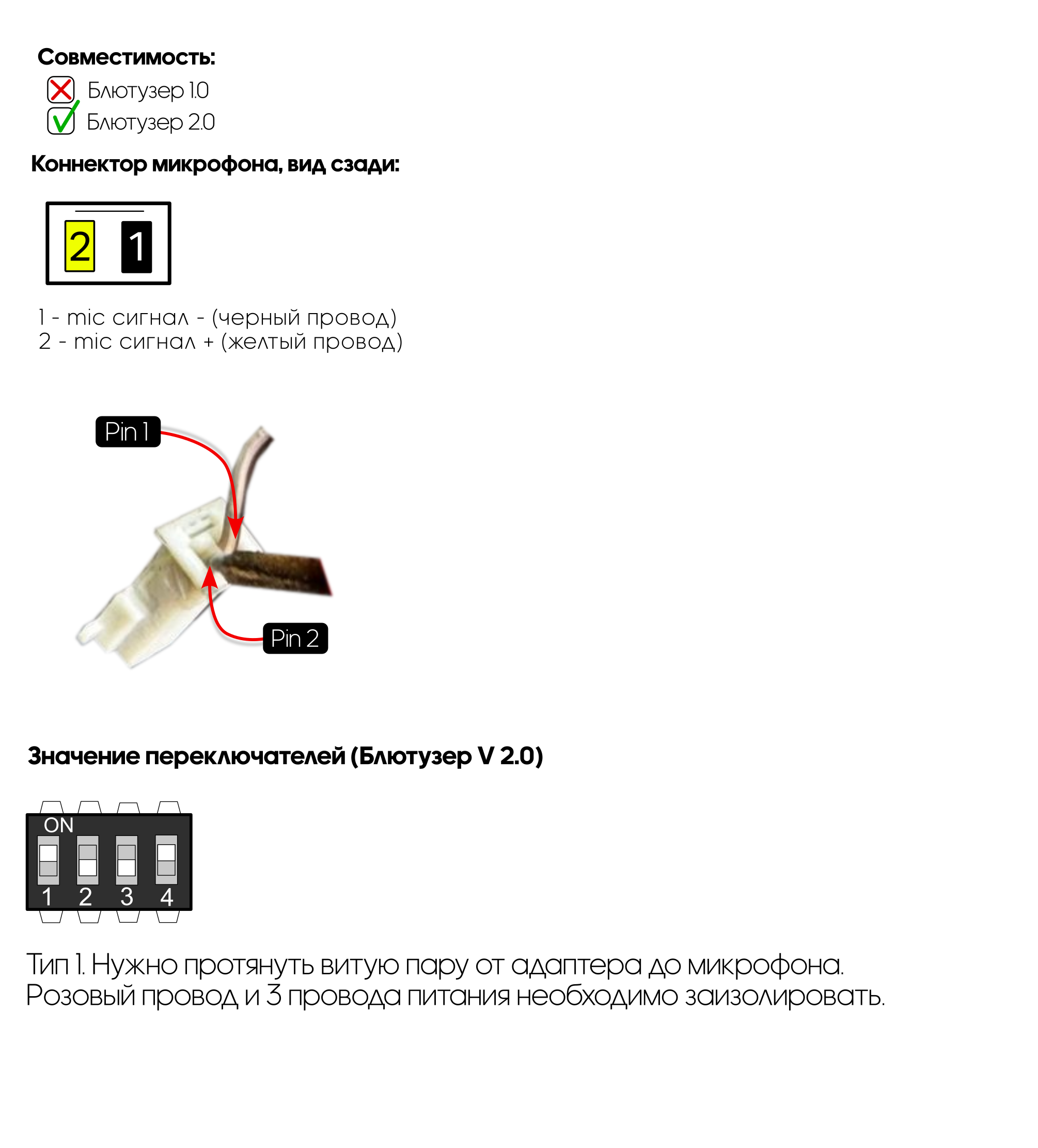 1) Перед началом электрического подключения блютузера убедитесь в том, что в новом головном устройстве (далее ГУ) есть 3.5mm jack вход для подключения внешнего микрофона для громкой связи и этот вход активен.